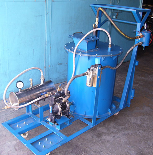 2. Open Type Spray System – A system is designed consisting of spray tank and accumulator mounted on structural trolley on wheels. It is provided with AODD Pneumatic Pump, Air Motor along with shaft attached to propeller blade, Hose assembly, Spray Gun and other pneumatic fittings. It is available in the following sizes viz. 100ltr, 200ltr & 400ltr.